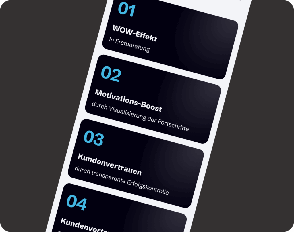 Durch die Kombination aus durchdachter UX, klarer Informationsarchitektur und starkem visuellem Design konnten wir das Vertrauen in die Technologie stärken und die Nutzer gezielt zur Interaktion und Anfrage führen.
